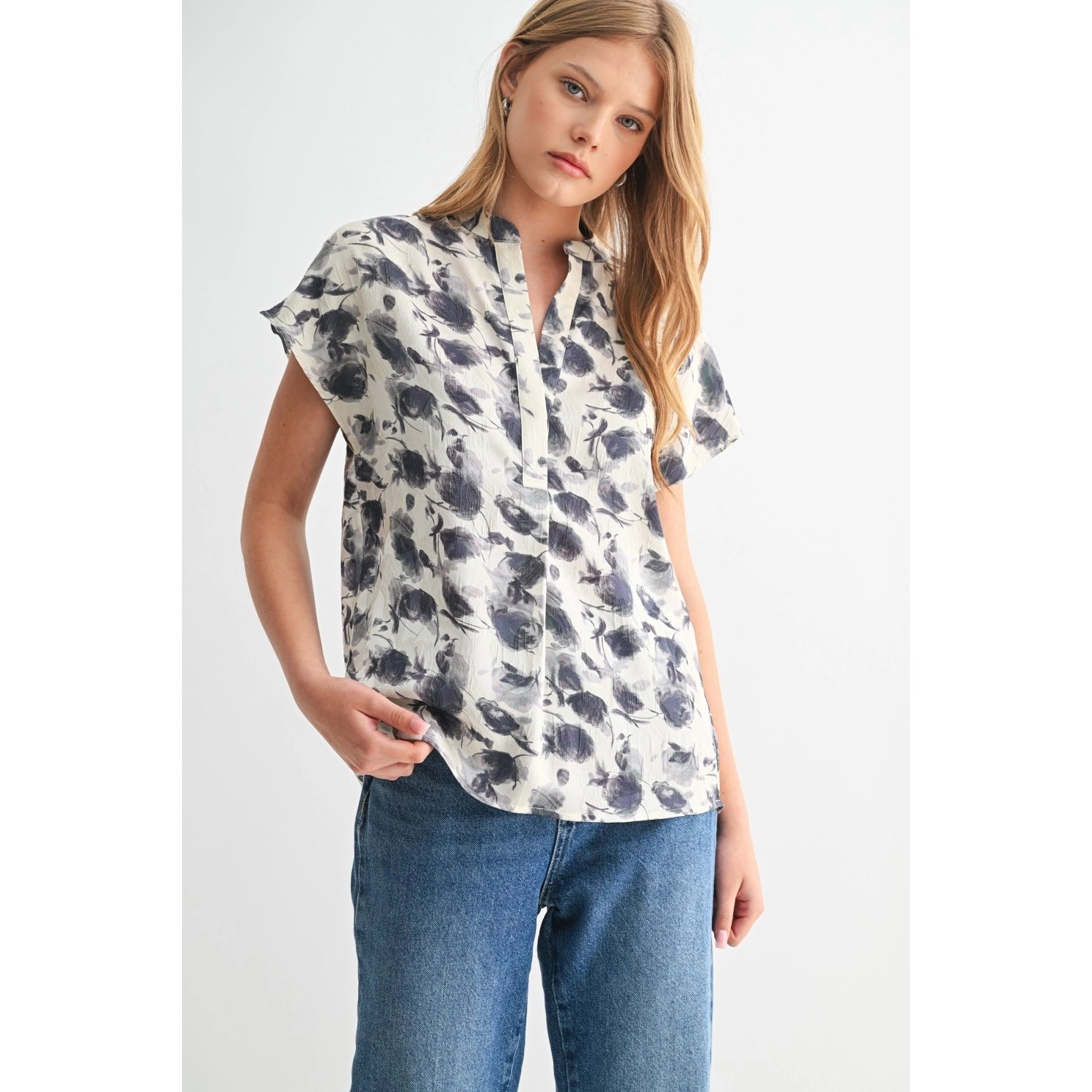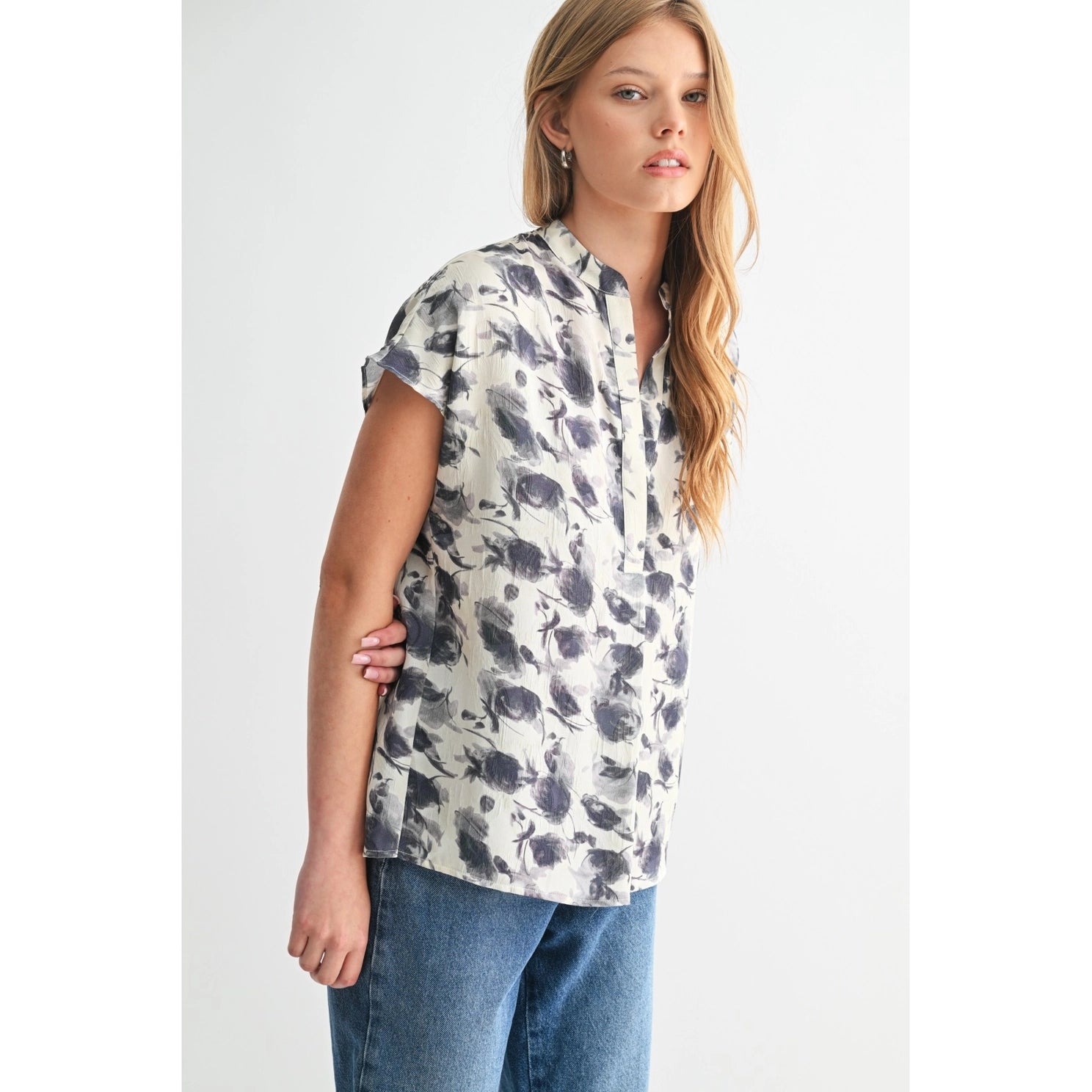 Floral Print Satin Dolman Top